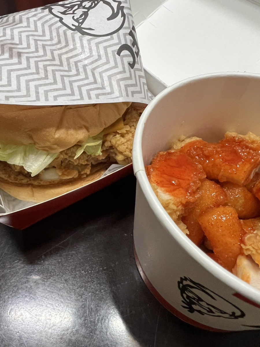 저녁엔 오랜만에 케엡시 버거 시켜먹었땅