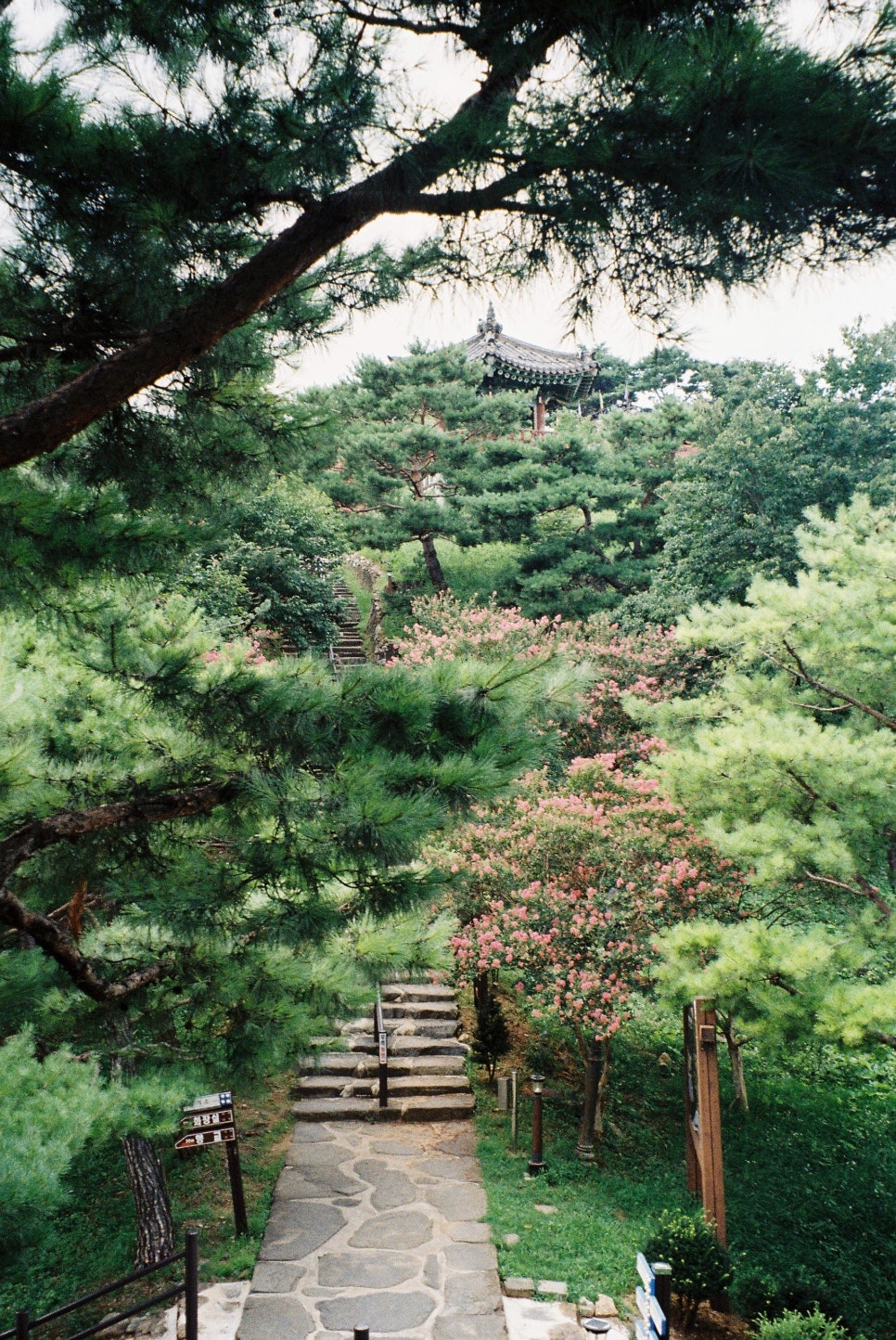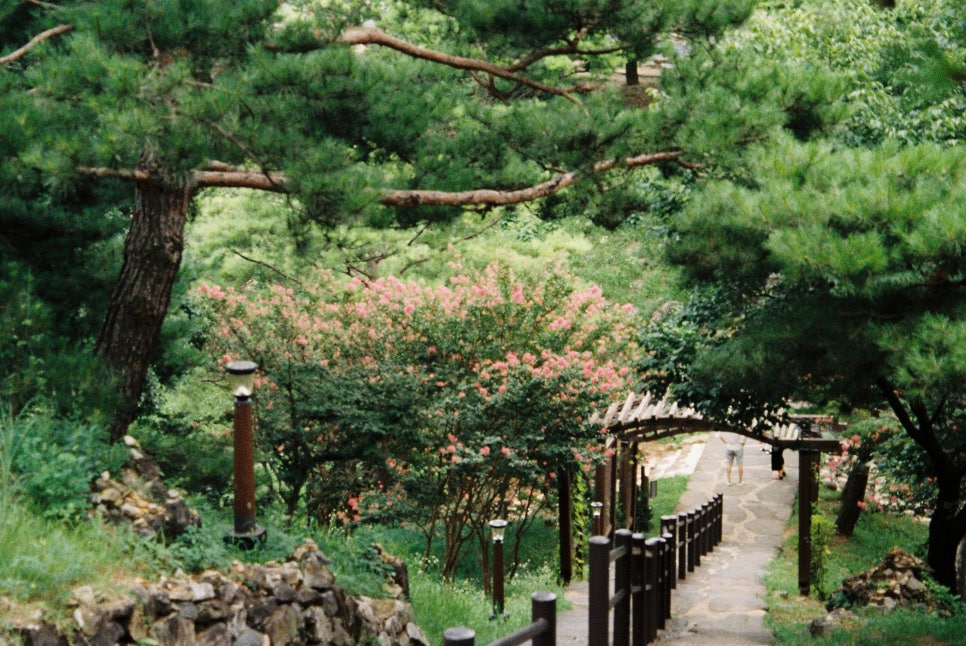 계단 사이로 핀 배롱나무 꽃들이 너무 아름다와요