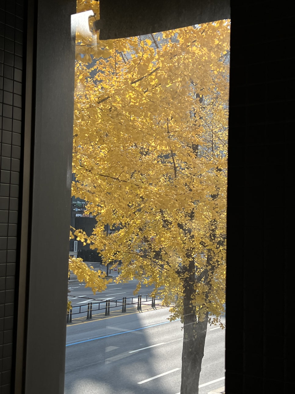 점심에 창밖으로 단풍잎이 한가득....