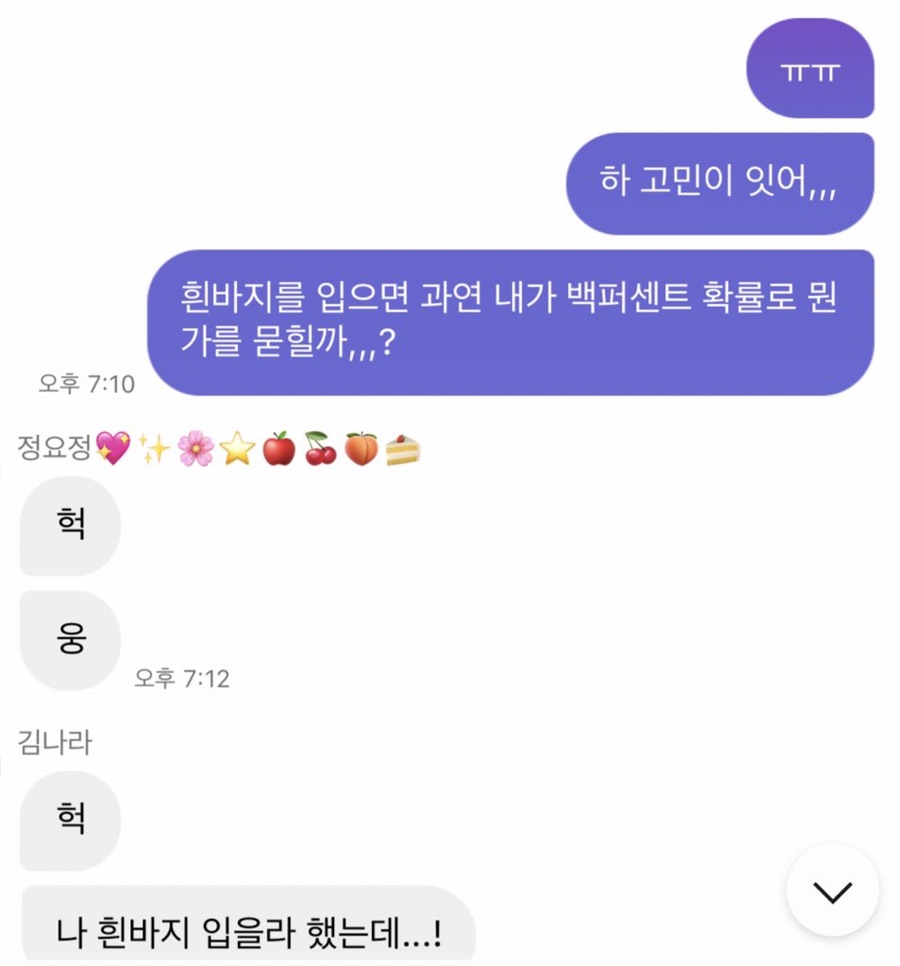 흰바지 입고 나오고 싶었는데,,, 만나기 전날ㅋㅋㅋ