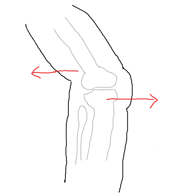 어정쩡한 상태로 무릎이 펴지지도 않고, 굽혀지지도 않는 상태였음