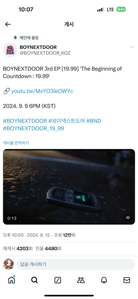 열두시에 알림 울려서 봤는데