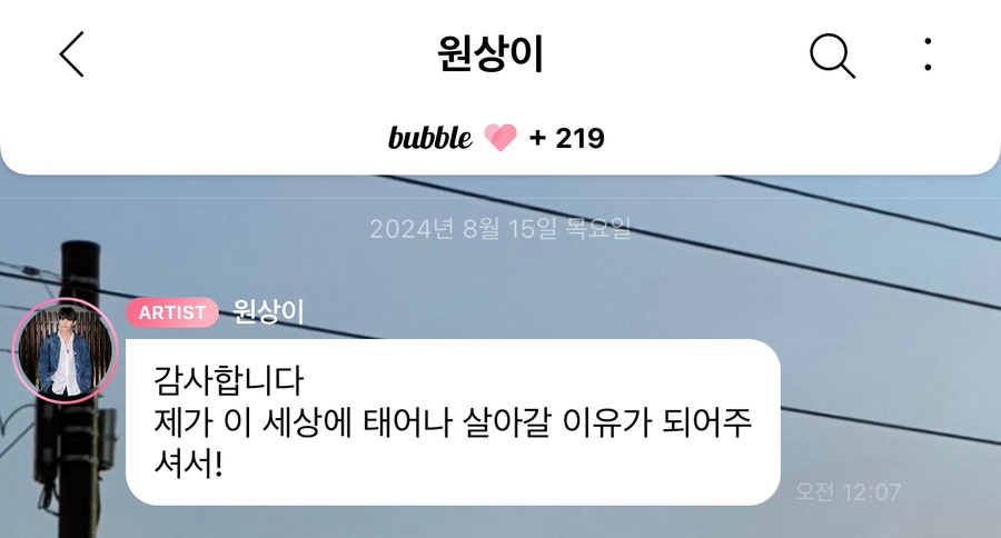 원상이 버블 보고 눈물 그렁🥺🥺