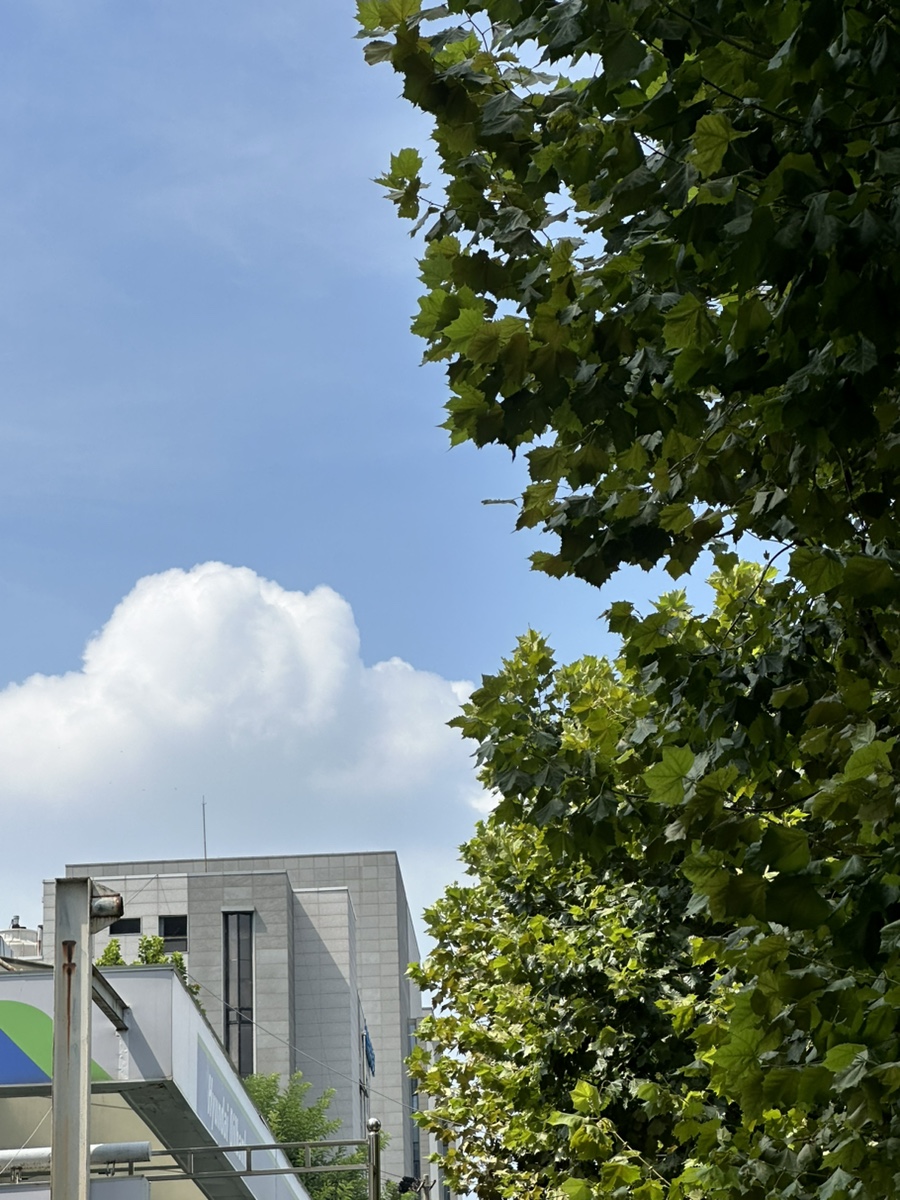 날은 무척 더운데 하늘은 맑더라, , ,