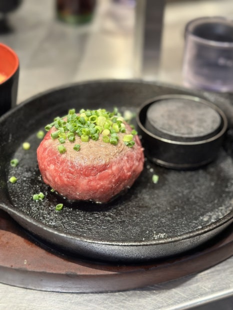 직접 함바그를 조금씩 떼서 달궈진 판에 얹어서 구워먹는건데