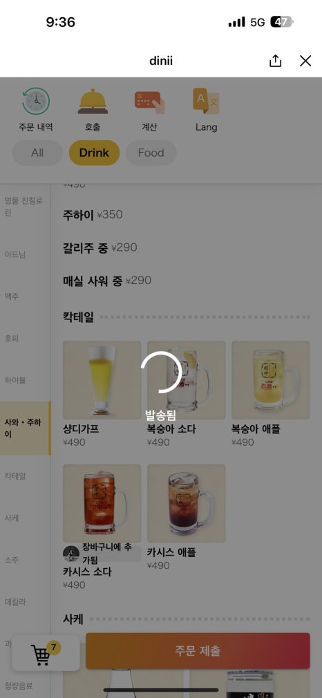 큐알찍으면 라인에서 주문이 커넝함!!!