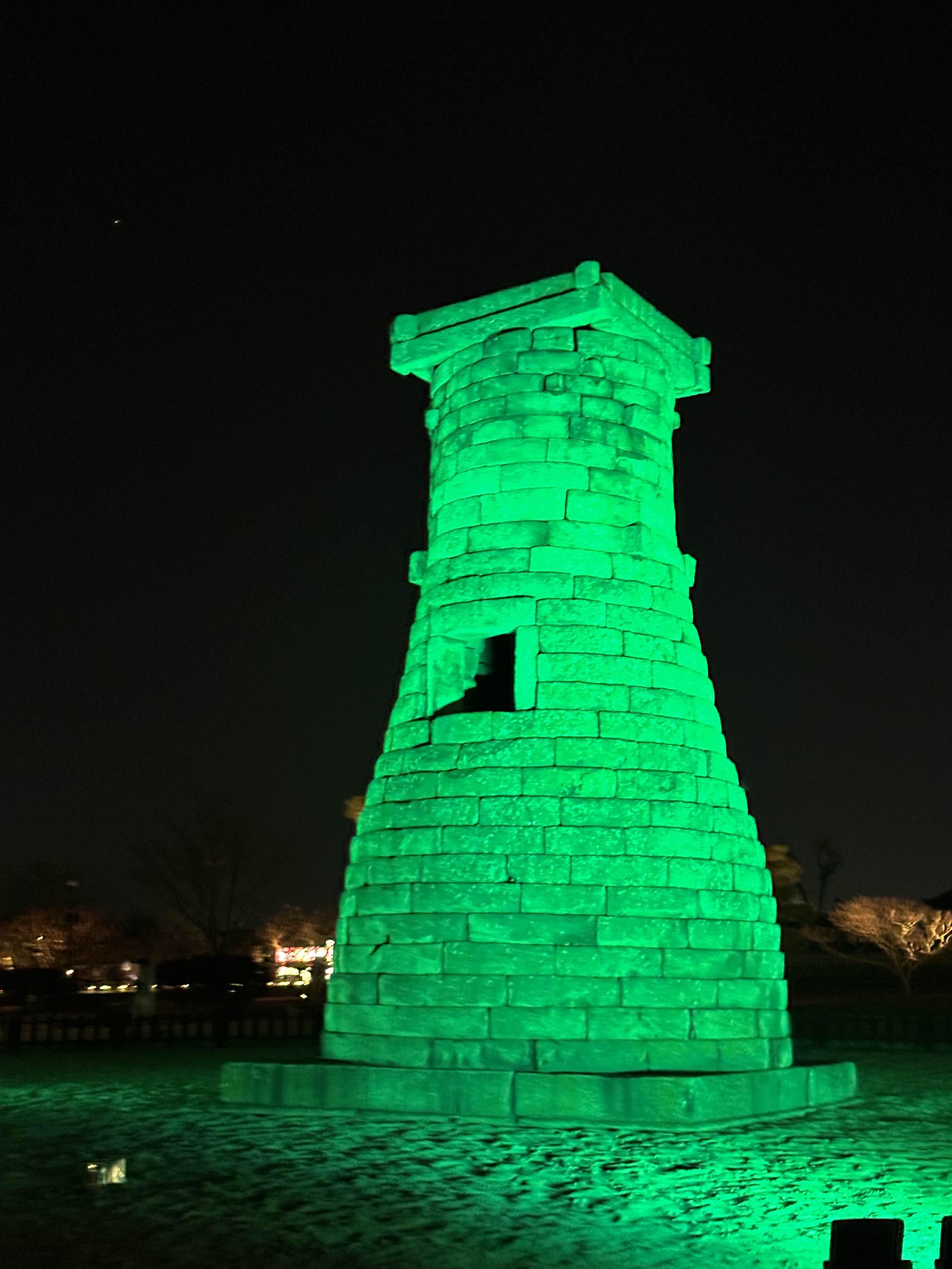 엄마랑 밤의 첨성대를 구경하러 왔어요