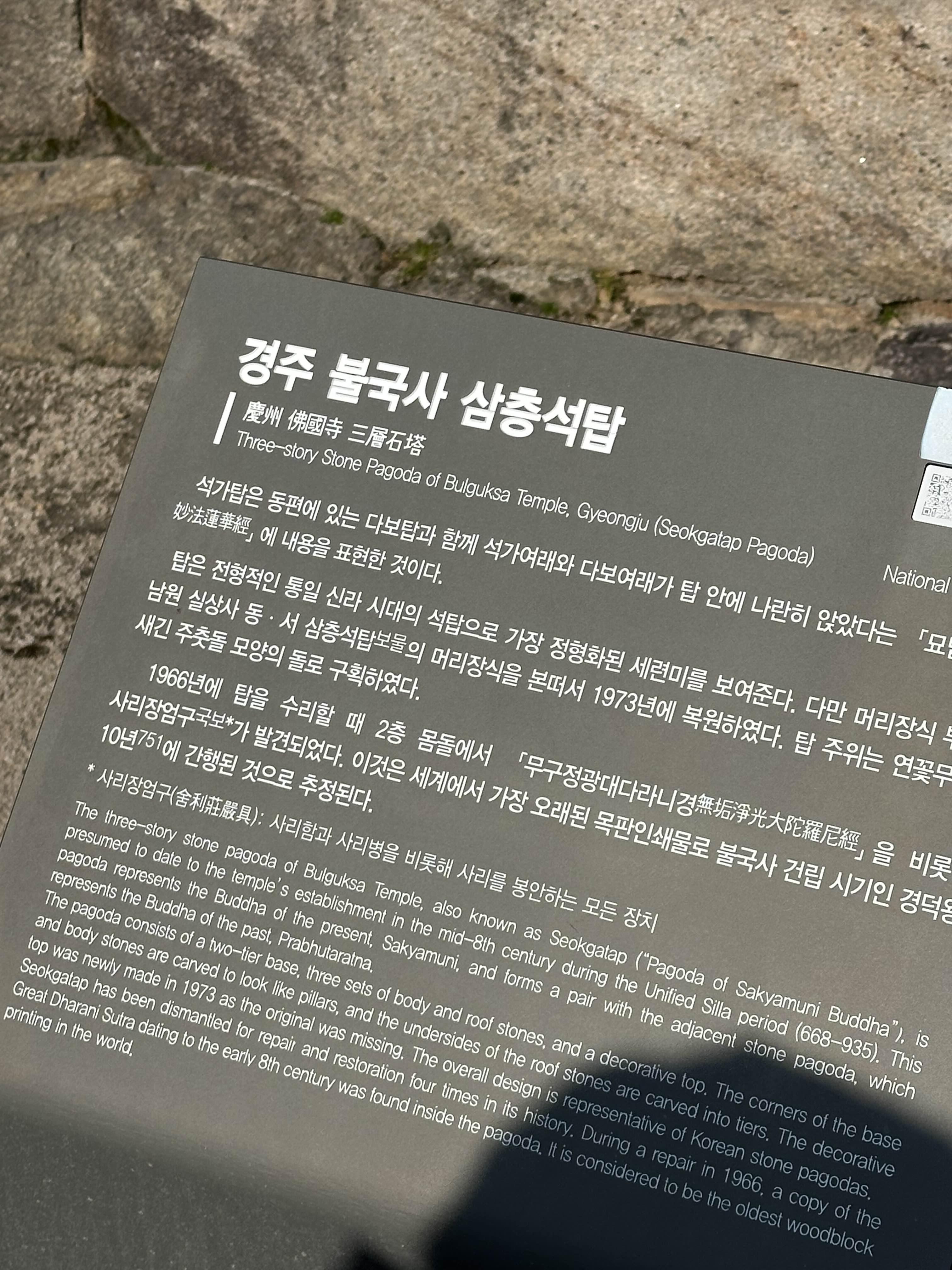 Seokgatap Pagoda 라고 되어있는데