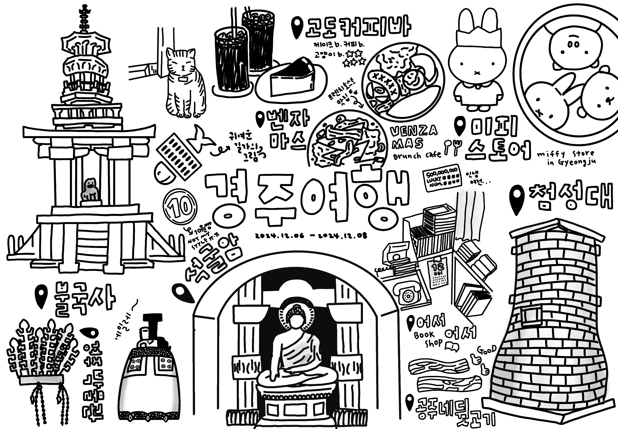 벤자마스에서 앉아서 경주여행의 순간순간을 그리고 싶어짐!!