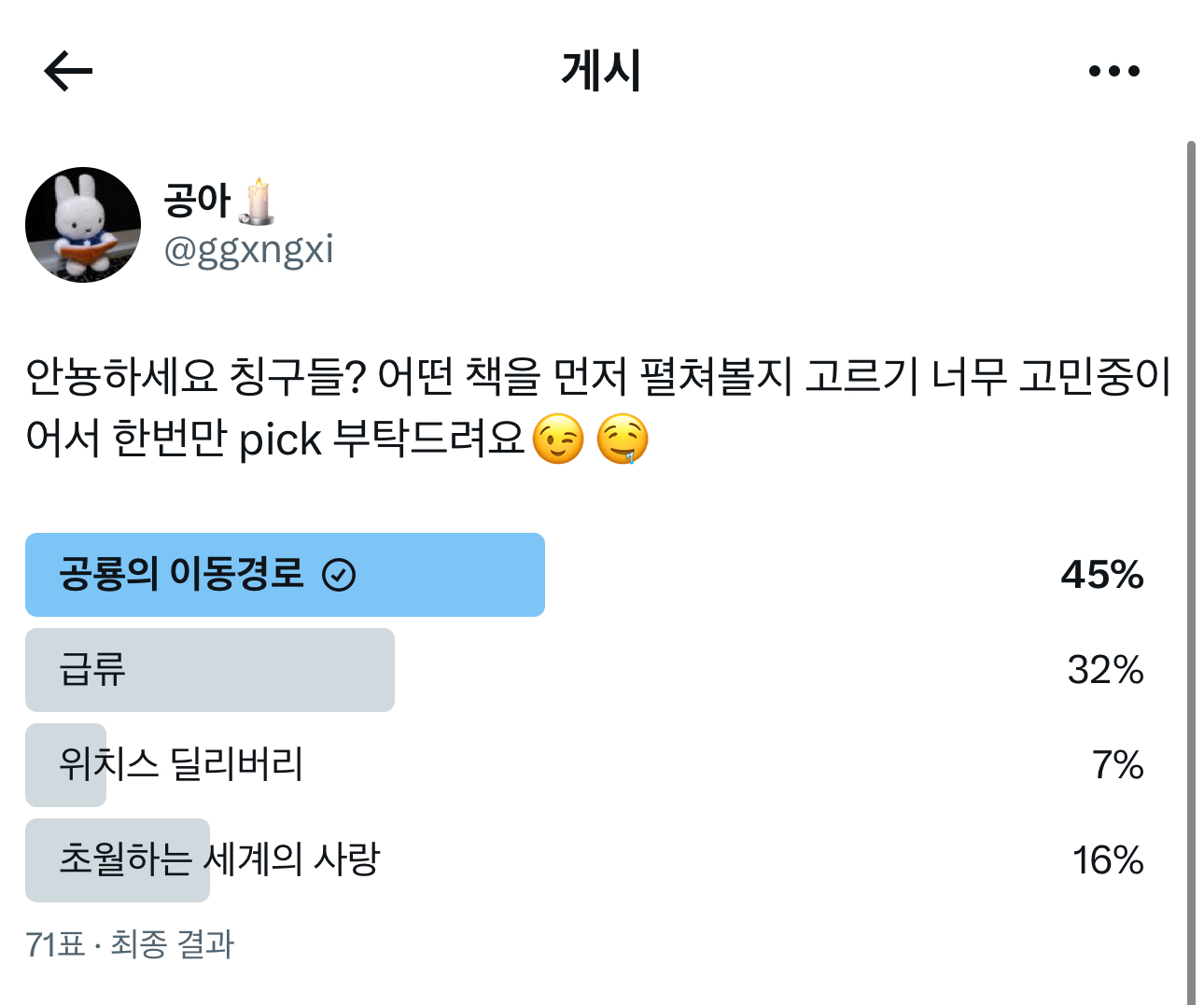 독서계 친구들에게 선택을 맡겼구요