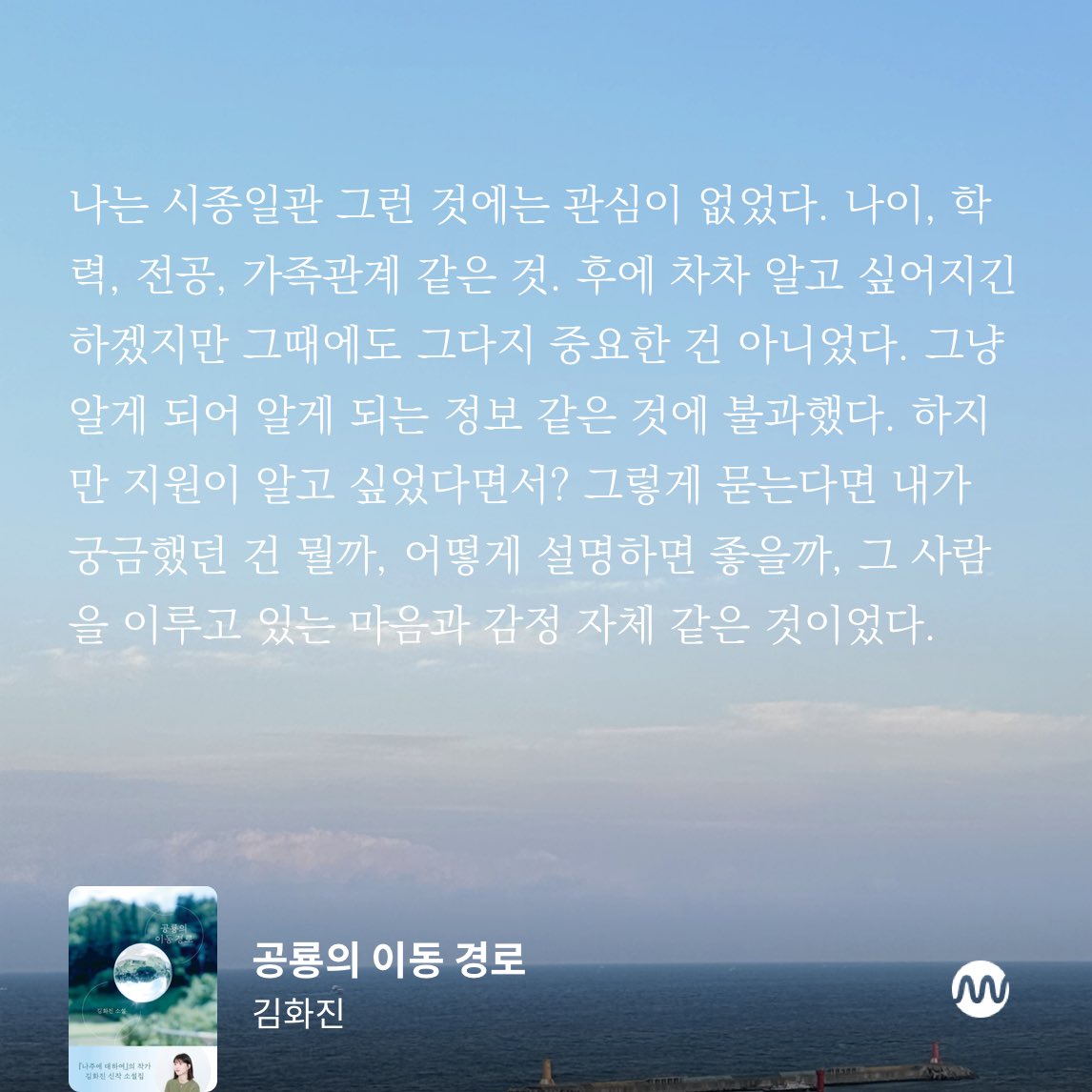 “공모전 결과 듣고 며칠간 밥 먹는 게 죄책감이 들더라. 그래서 좀 굶었어. ‘이렇게 하루 종일 비생산적인 인간이어도 되는 걸까?’ 싶고. ‘나는 언제쯤 죄책감 없이 영화를 보거나 맥주를 마실 수 있을까?’ ‘내가 아무 비용이 들지 않는 인간이면 좋겠다’ 뭐 이런 생각을 계속하고 있더라고, 내가. 그거 너무 나쁘잖아, 자신한테. 그치?” 나는 승호가 하는 말이 무슨 말인지 잘 알았다. 일인분의 사람이 되지 못했다는 생각 때문이었다. “이 모든 지난한 과정이 지나서 나중에 뭔가가 되어서 '그런 때도 있었지' 하고 추억할 후일담이 되어야 하잖아. 그런데, 그렇게 되지 않으면 어떡해?”