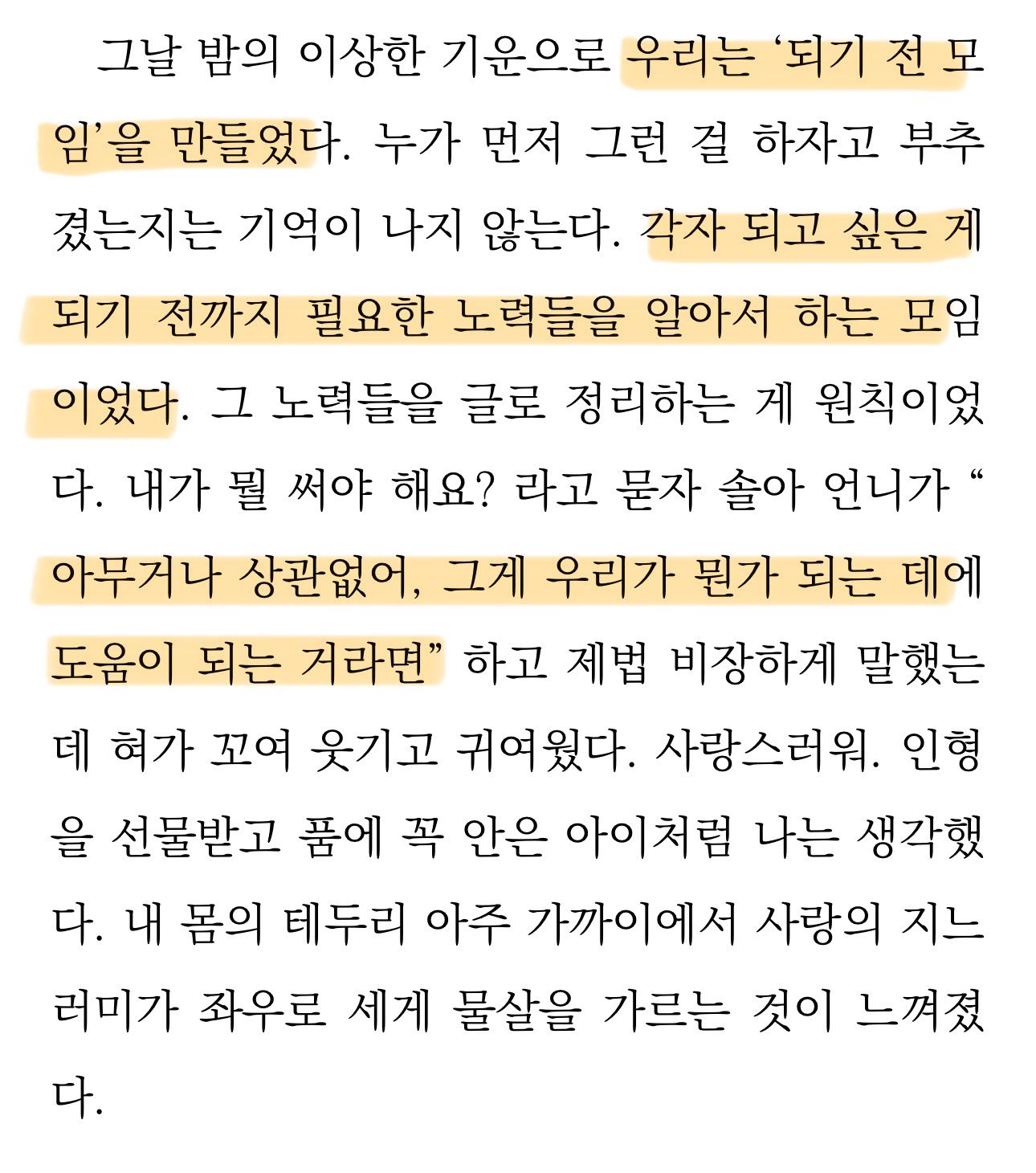 정말 궁금하고 해보고 싶었던 '되기 전 모임'에 대한 내용도 흥미로웠어요