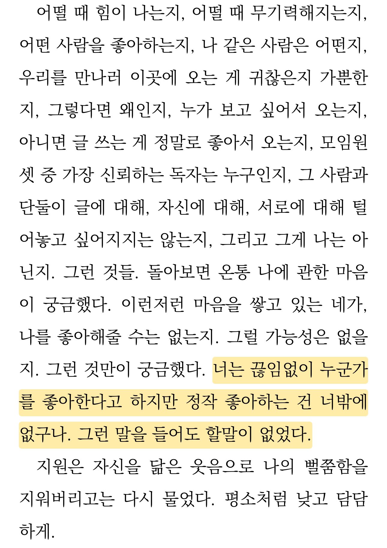 특히 ‘너는 끊임없이 누군가를 좋아한다고 하지만 정작 좋아하는 건 너밖에 없구나. 그런 말을 들어도 할말이 없었다.’