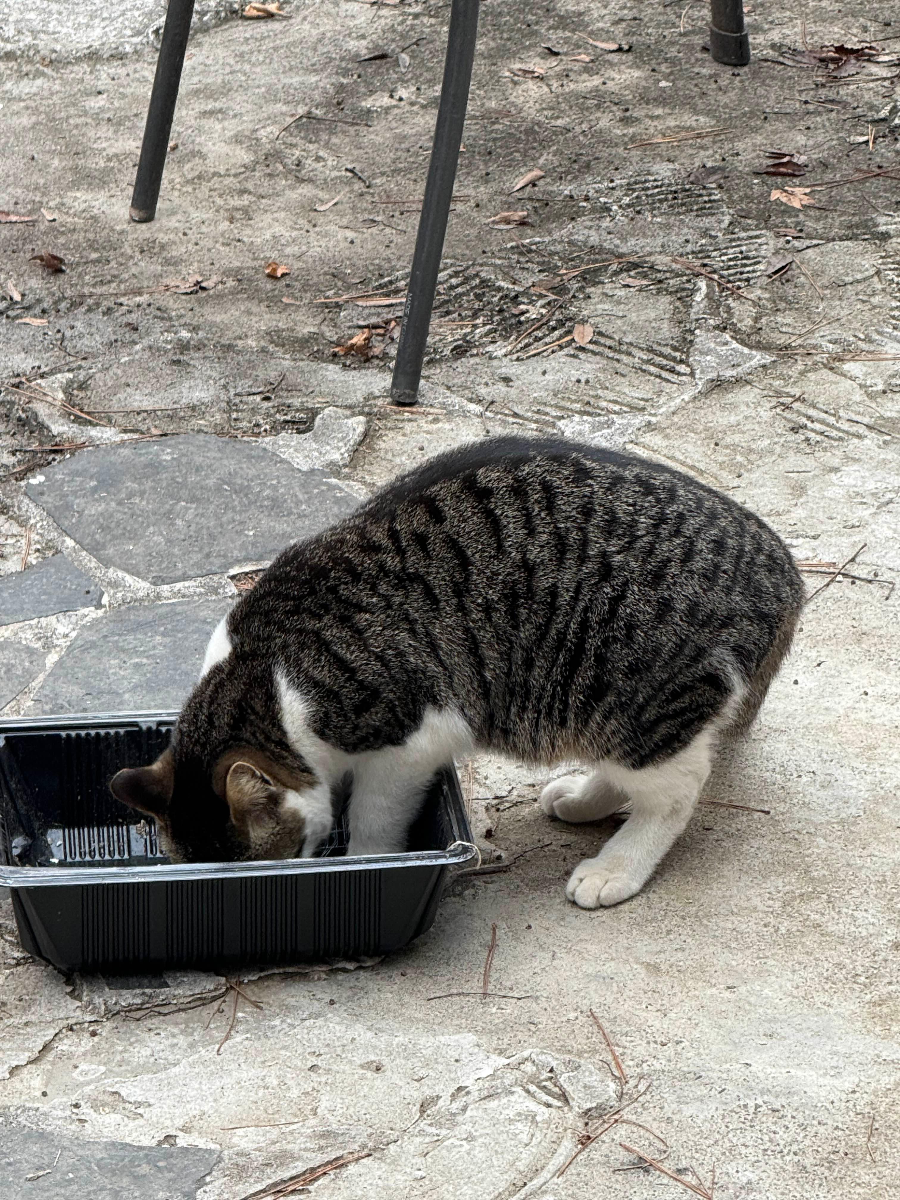 또 다른 고양이는 밥그릇에 발까지 넣어가면서 고기 먹고 있더라