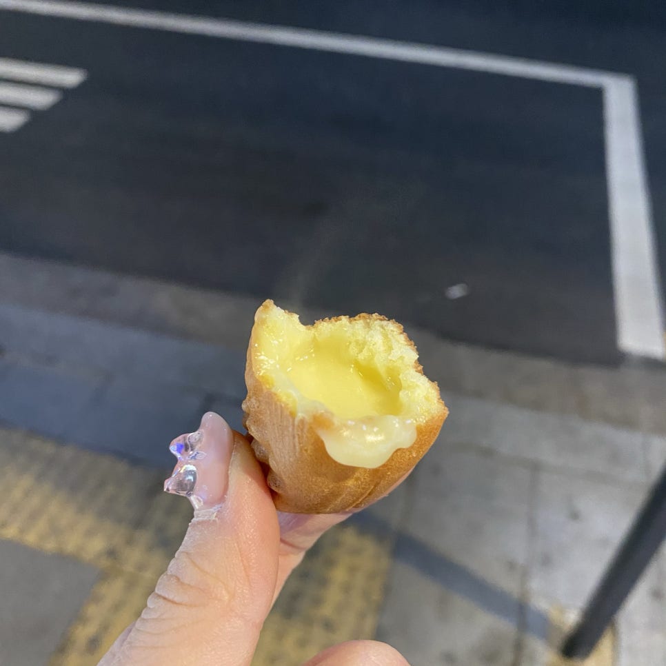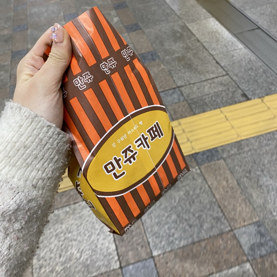 집 가는 길에 지하철에서 나와서 버스 기다리면서 델리만쥬 사먹기!