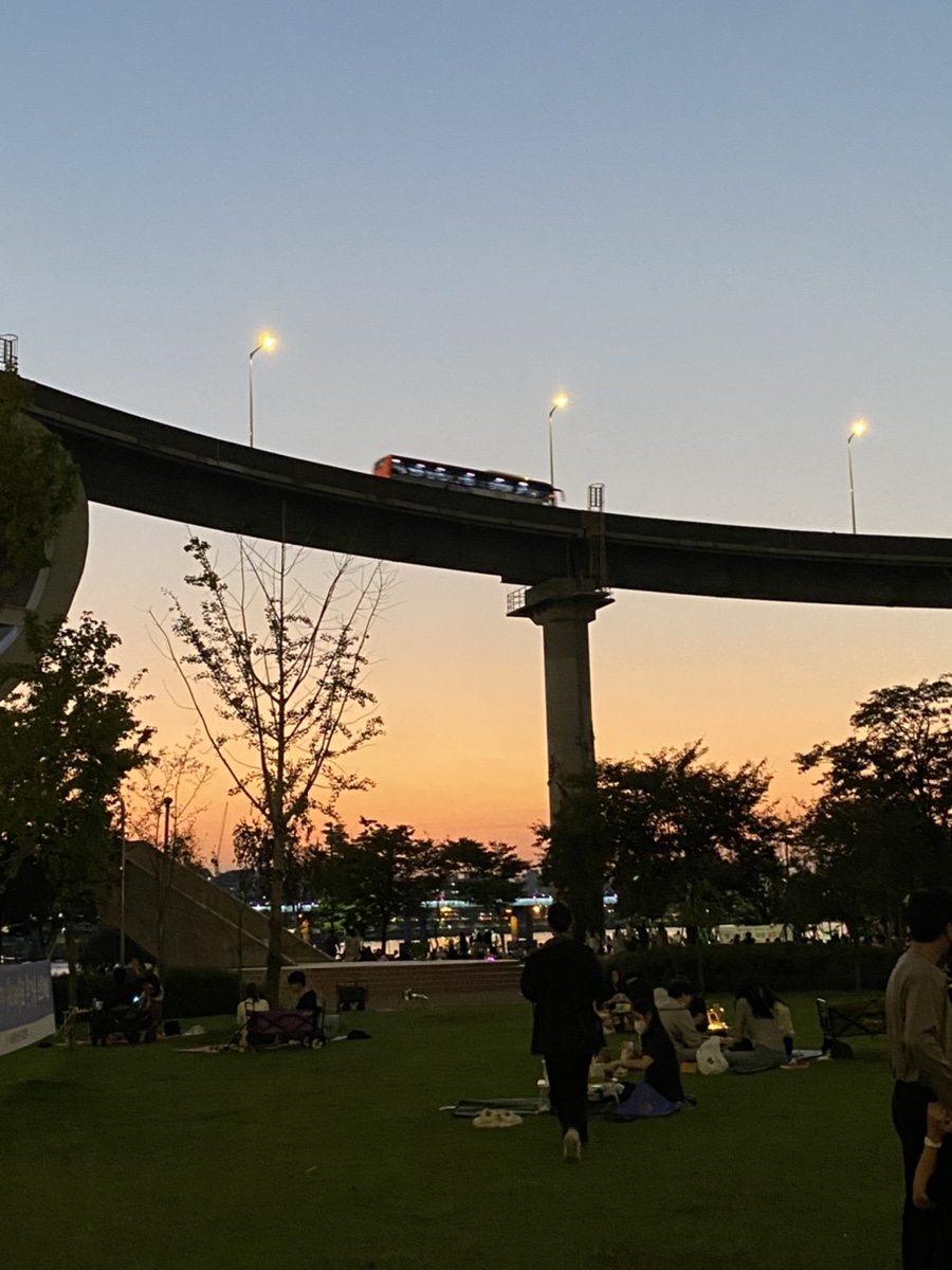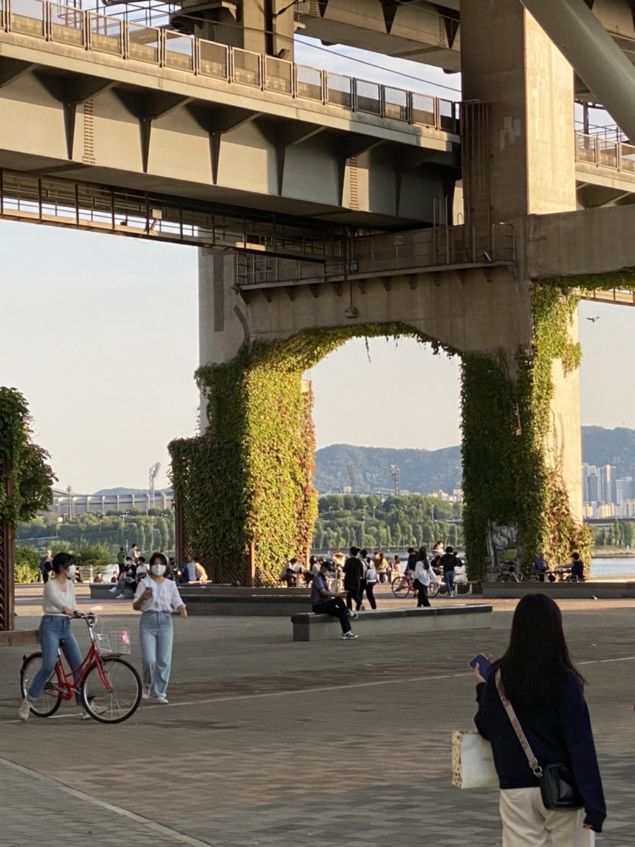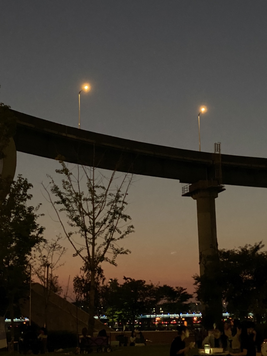 음료 하나씩 달랑달랑 들고 한강으로 넘어갑니다
